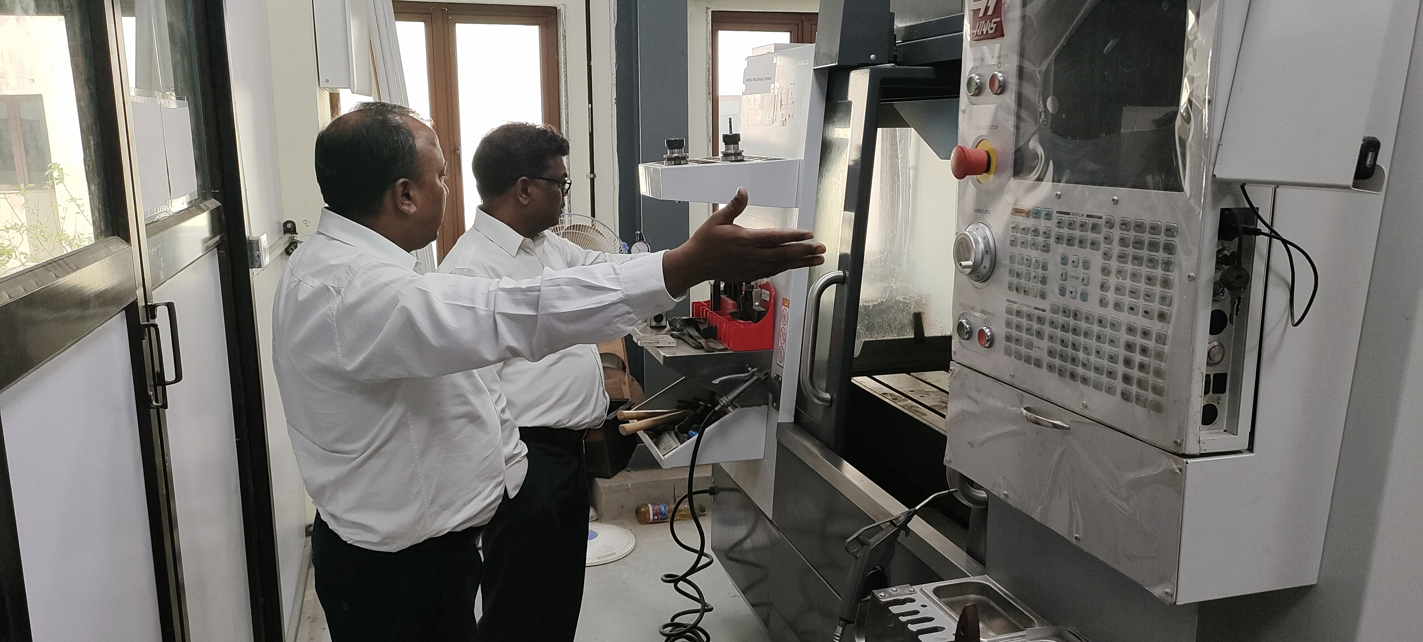 - Machining & Fabrication Lab – CNC/VMC machines, 3D printers, micro-fabrication tools, laser machining, and robotic welding setups for building prototypes.